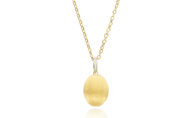 18K gold pendant hand engraved to achieve a silk-life finish, with pavé diamonds.