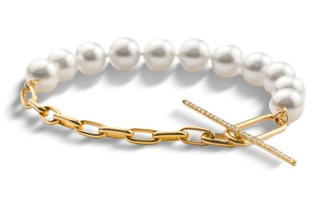 South Sea pearl and 18K gold bracelet with toggle clasp featuring 25 diamonds