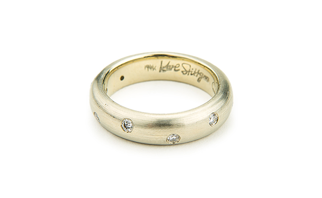 Starry Night Ring (narrow) in 19K white gold, flush set with diamonds